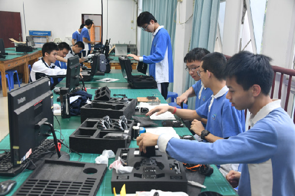为培养学生的创新意识、创新思维和创新能力,学校开设了科技创新、机器人、无人机操控与编程飞行等课程,涉及电路、传感器、计算机软硬件等多方面知识,培养学生科技创新精神。