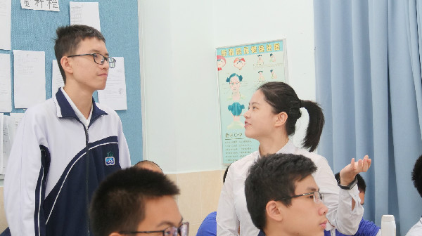 吕艳坤老师通过有趣的物理小实验引导学生认识共点力,从运动和受力两个角度理解平衡,通过一题多解引导学生思考共点力平衡的方法,发展其科学思维。在高三的化学课堂上,髙煌老师紧扣高考考纲,通过核心素养的渗透完成一轮复习《电解质》的学习。朱雯颖老师结合此前班级同学生病的经历,将生物和生活融为一体,通过引导孩子们思考分析病因、病理、治疗方法等问题展开知识的讲解。