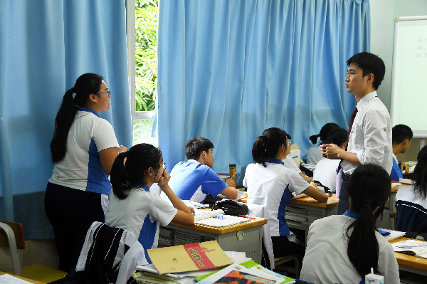 陈明非老师带领学生领会《再别康桥》中的绘画美,分析诗中美好的意象,帮助学生理解徐志摩对爱、美、自由的追求。李伟泰老师引导学生用理性思维与科学精神建构最优的空间直角坐标系。英语组的李婉凌老师将阅读圈策略应用到课外阅读Teens的教学中,学生组成阅读小组自由选择角色阅读同样的内容并完成相应的任务,明确分工,让学生体验互助式合作学习。