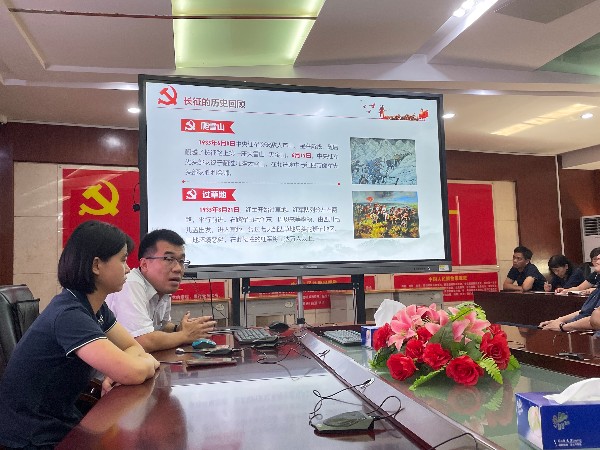 凝聚着苦难与辉煌的长征,是在面对生死存亡抉择之时,中国共产党领导红军以无与伦比的英雄气概创造的人间奇迹,以百折不挠的精神书写的英雄史诗。李阳老师从红军长征的原因、红军长征的历史回顾、红军长征的伟大意义、总书记谈长征精神及弘扬长征精神五个角度入手,详细地为党员同志们梳理了红军长征的伟大历程。惊心动魄的血战湘江、生死攸关的遵义会议、以弱胜强的四渡赤水、千钧一发的飞夺泸定桥、可歌可泣的爬雪山过草地、激动人心的会宁会师……李阳老师用一个个生动的故事串联起了长征路上的雄关漫道,彰显了中国共产党人坚定不屈的理想信念。“风雨浸衣骨更硬,野菜充饥志越坚;官兵一致同甘苦,革命理想高于天。”这份理想信念,一直是激励中国共产党勇往直前、攻坚克难的精神财富。