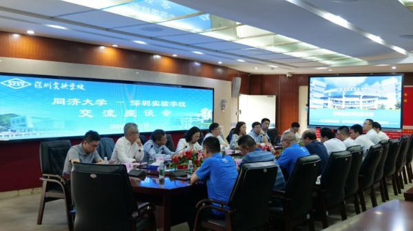 两校首先在综合楼会议室进行了座谈交流,高中部办公室吴平波主任主持会议。深圳实验学校党委副书记、副校长邓旭在致辞中向莅临本次活动的同济大学党委书记方守恩教授及同济大学的领导和专家们、嘉宾们致以热烈的欢迎。深圳实验学校党委书记夏育华向来访的方守恩书记一行介绍了深圳实验学校的发展历程、办学理念和价值追求,希望能够与同济大学双高联盟,共同探索科技创新拔尖人才的培养方略,为国家和民族输送更多的脊梁。同济大学党委书记方守恩表示同济大学在学生培养上与深圳实验学校的办学理念有异曲同工之妙,两校携手培养学生的核心素养和创新精神,并介绍了同济大学的特色专业、课程改革等。