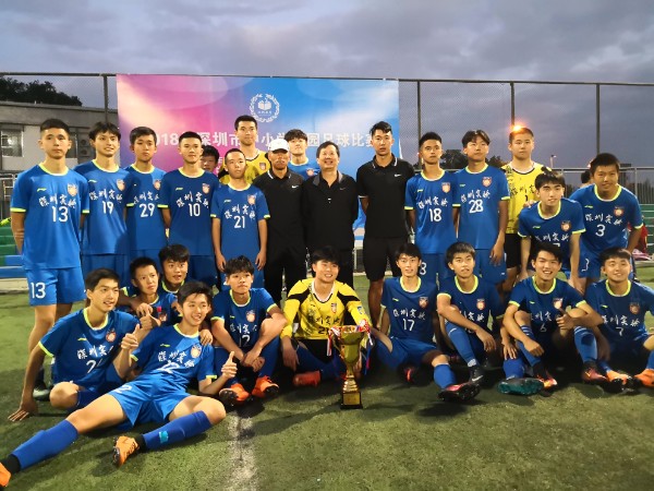 2018年11月7日至14日,在深圳市中小学生校园足球比赛(高中男子组)中,深圳实验学校高中部足球队一路过关斩将,勇夺冠军,获得代表深圳参加2019年“省长杯”全省总决赛的资格。