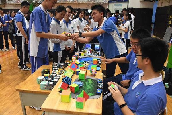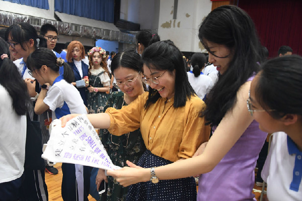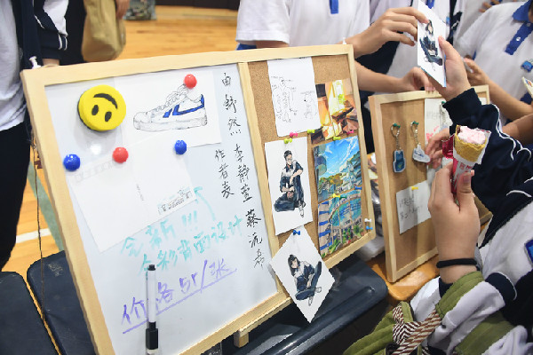 大受欢迎的7号摊位所卖的教师卡牌取灵感于拍卖会的拍品2013教师扑克牌,这是一件极具收藏意义的商品,引得同学们纷纷购买。高一(1)班摊位甚至将年级成绩第一的同学签名作为商品,借助“偶像”的力量亦是独具创新。
