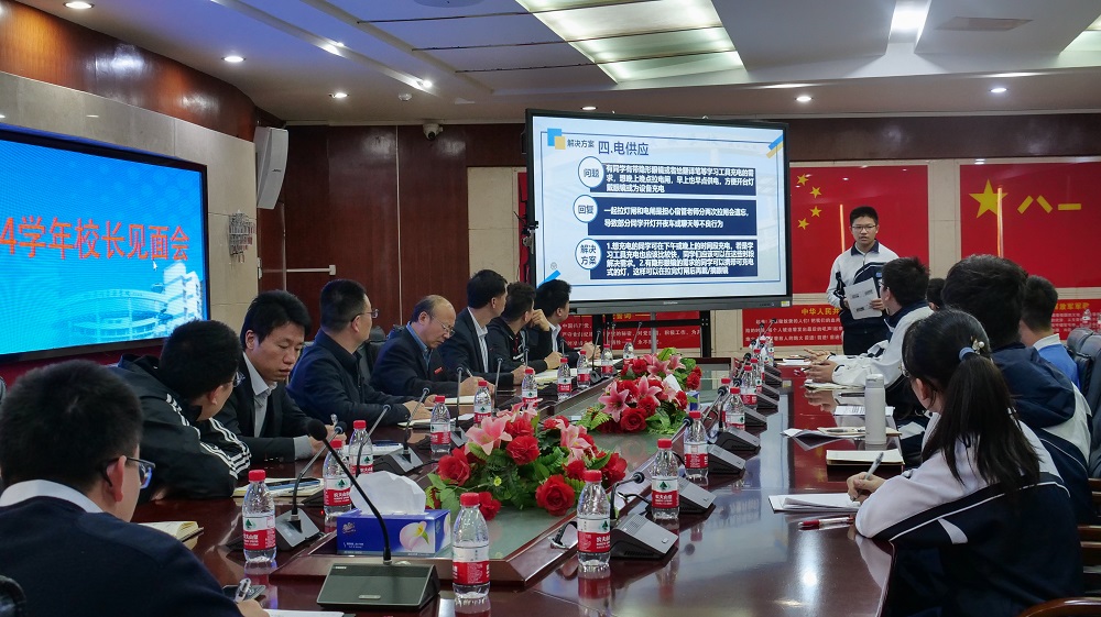 校长见面会的第二部分是由班长代表就各班较为关心的问题进行提问。与会班长们认为校长见面会的召开很有必要,也感谢学校领导能够抽出时间来参加此次会议。班长代表就大家关心的食堂就餐、晨练、校本课、图书馆图书和校医室等方面与各处室主任进行了现场沟通。