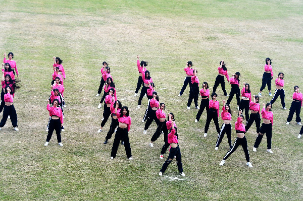 高一年级还带来了火热的啦啦操表演,青春洋溢的舞步、整齐划一的动作、变幻多样的队形,演绎着力与美的结合、刚与柔的碰撞。