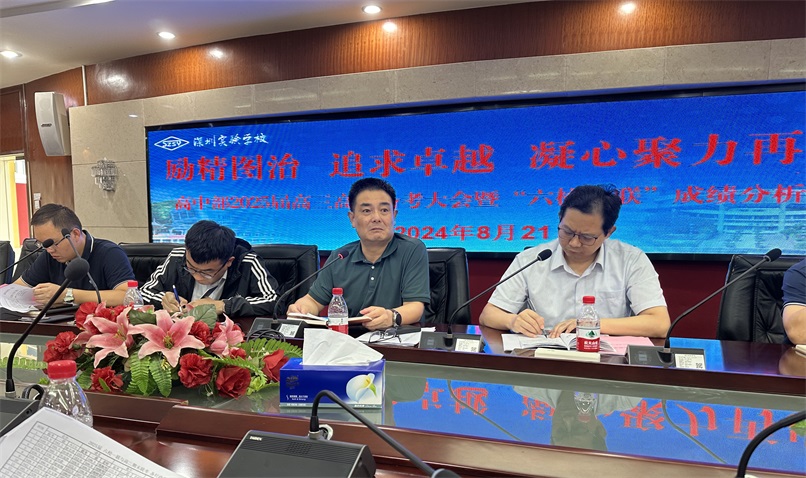 2024年8月21日,深圳实验学校高中部2025届高三高考备考大会暨“六校一联”成绩分析教师会在综合楼309会议室顺利召开。会上,学校领导对高三工作进行全面部署,提出高屋建瓴的指导意见;备课组组长代表和班主任代表结合实际情况针对性地提出了高三复习备考建议。此次会议由高三年级祁国强主任主持,学校各处室领导及高三年级全体教师参会。