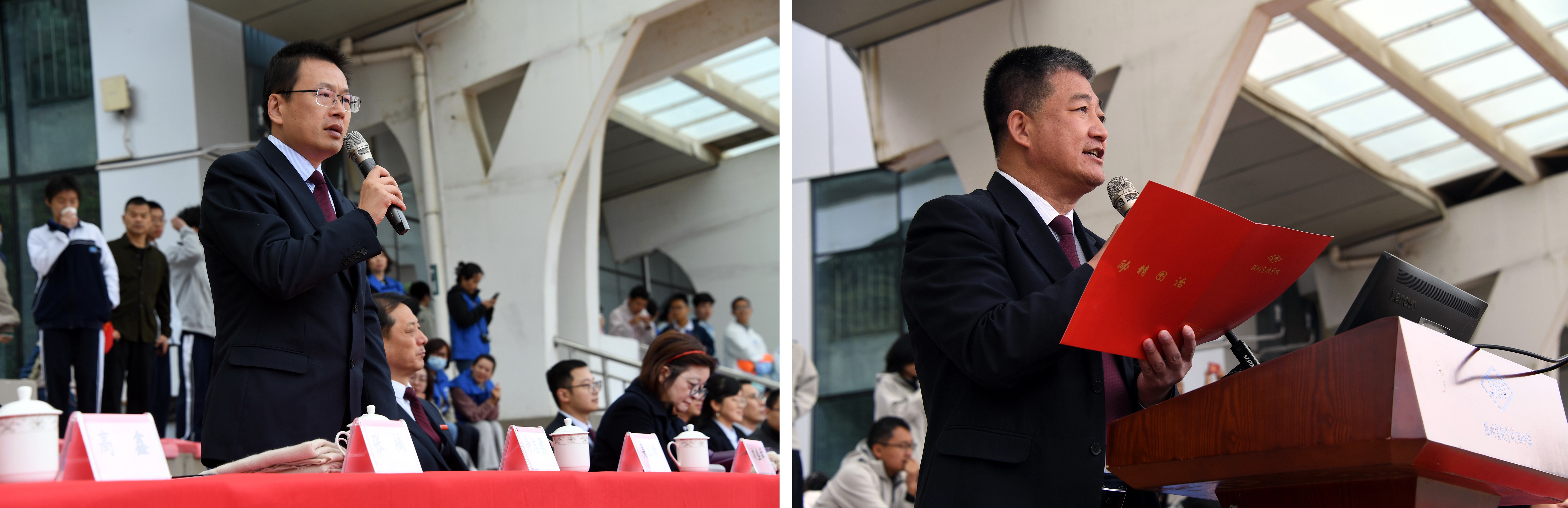 入场式之后,余志勇副校长宣布高中部第四十一届体育文化节正式开幕。王喜峰执行校长为运动会开幕致辞。王校长阐述了体育运动与科技的内在共鸣。体育不仅是体能的淬炼,更是意志的磨砺与品格的熔铸,奔跑中的节奏掌控、协作时的系统思维,正是叩响未来创新之门的必备素养。王喜峰校长期待同学们在接下来的比赛中,既要展现“更快、更高、更强、更团结”的竞技风采,又要懂得尊重、学会合作、珍惜友谊,勉励全体同学在这场力与美的盛会中,尽情释放青春活力,共同发扬实验学校团结拼搏的体育精神。