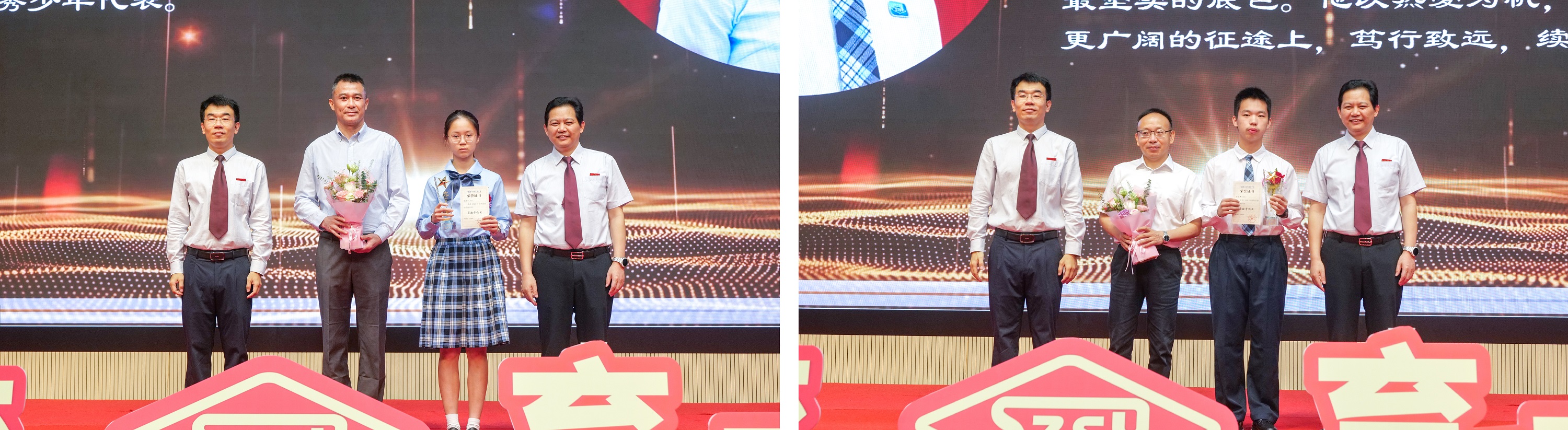 在热烈的掌声中,获奖学子依次登台接受表彰。他们于学业中深耕不辍,在竞赛场上勇攀高峰,更在科技节与实验室里尽展创新锋芒;他们以摄影、音乐和运动的才情与活力点亮校园日常,用志愿服务传递温情与善意。在全面发展的成长轨迹中,他们正一步步淬炼为心怀家国、勇担时代使命的新青年。