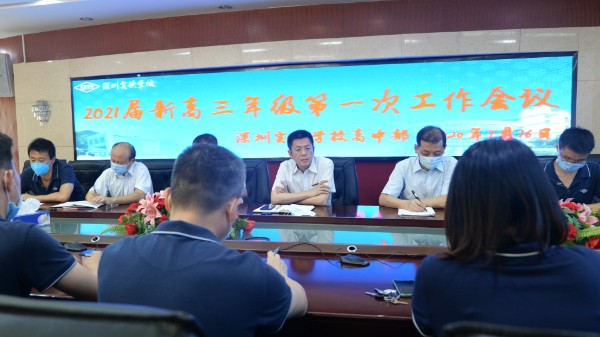 2020年7月16日,高中部召开2021届高三年级新高考备考工作会,深圳实验学校副校长、高中部李震宇执行校长,高中部副部主任、教务处刘盛举主任,教研处鲍方遒主任,办公室吴平波副主任,年级主任裴绍才出席本次会议。会议由年级主任朱思敏主持。