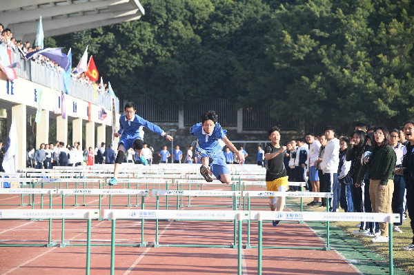 12月6日上午,开幕式结束后,随着运动员们检录完毕,男女子百米跑径赛瞬间点燃了师生们的热血之心。运动员们蓄势待发,只待发令员一枪令下。运动场看台上,同学们挤满了整个围栏,用最大的声音为运动员加油助威。跑道这边的一百米、四百米运动健儿们正以箭矢中的之势直击终点,不远处的高一男子组跳高也架上了杆子,各班健儿们摩拳擦掌试比高;跳高场小跑道围成的同心圆中熙熙攘攘,呐喊声、快门声、欢呼声一时齐发,此起彼伏。