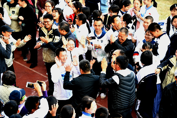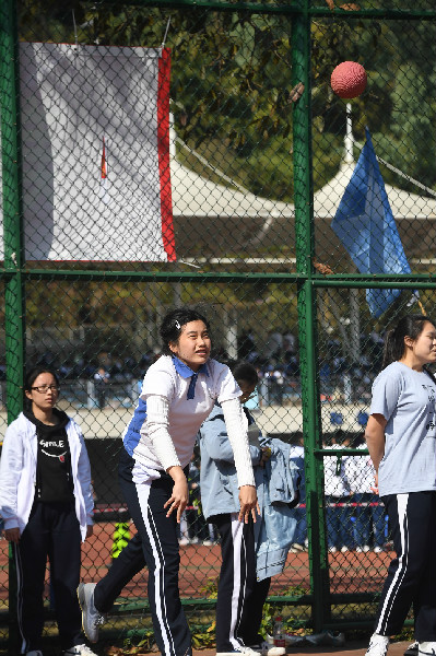 上午的赛事在高二女子组跳高的冠军一跃中落下帷幕。经过短暂的休息,下午的操场再次被田赛占据,跳远、三级跳、实心球、跳高等赛事让安静了一中午的校园又一次沸腾。阵风袭来之下,抱憾选手的失落、得势选手的雀跃、观赛观众的欢呼你来我往地在校园里穿梭,而后一同吹向三面旗帜,国旗、会旗、校旗在风中高高扬起,第一天的赛程圆满结束。