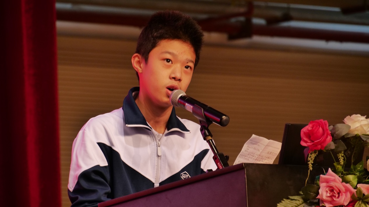 紧接着,上学期第三次段考考取榜首的陈冠宇同学与我们分享了他的学习经验。他向我们阐述了树立目标的重要性,他对我们说:“目标是催人奋进的。”他认为,树立目标之后,要做的便是把目标分割成许多个精细的小块,然后用行动一步步实现自己的目标,这便是他的学习之道。