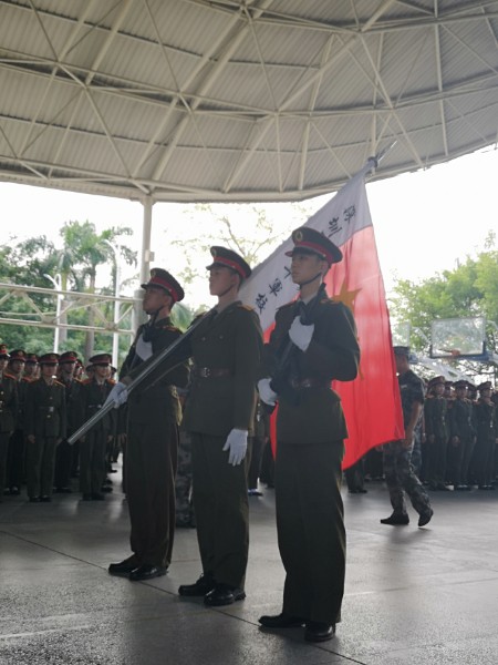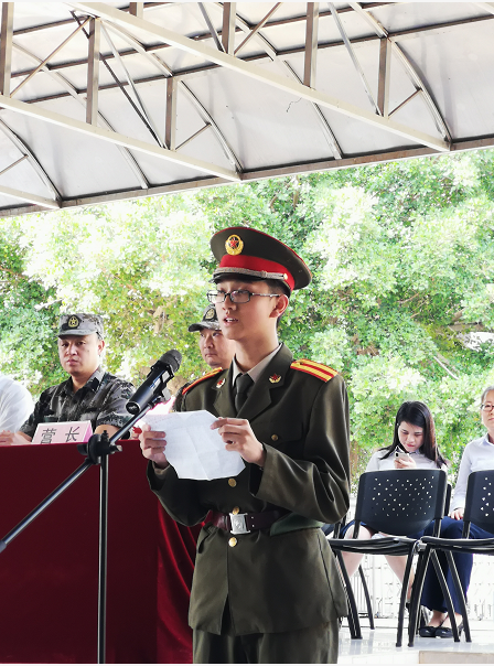 周五下午一点整,结营仪式正式开始。身着军装的同学们一个个精神抖擞、昂首挺胸。双手紧贴裤缝已经成为了我们的习惯,军姿端正我们也早已熟悉,往台下一站,我们身上已经有了几分铁血军人的影子!