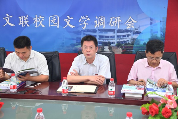 少年人文学院吴平波执行院长系统介绍了校园文学创作情况。学校长期坚持“人格健全、特长明显、学业进步、和谐发展”的办学理念,注重学生“人文素养”与“科学精神”协同发展,在课程改革、校本课程建设、校园文化建设——打造书香校园、创建人文学院平台、开展文学社团活动、创办文学刊物、培养文学特长生等方面取得显著成效与成果。