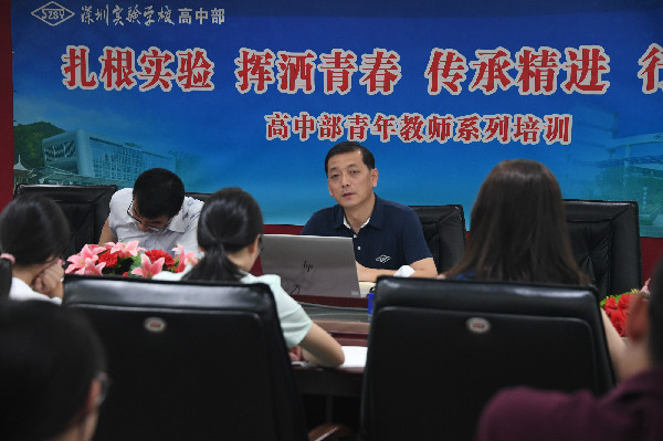 刘盛举主任首先带领青年教师回顾了深圳实验学校教风——“敬业、创新、严谨、精深”的深刻含义。深圳实验学校建校近35来取得了一系列卓越的成就,靠的就是一支堪称全深圳最敬业的教师队伍,实验教师们专业精深的态度得到了社会各界的一致认可。亲其师,才能信其道。高中部教育教学工作扎实有效,是优秀教师的摇篮,青年教师们要秉持实验学校的优良传统,认真观察,认真思考,热忱琢磨,不断提高自己的专业水平,用严谨科学的态度对待教学,通过自己的一言一行传递给学生。