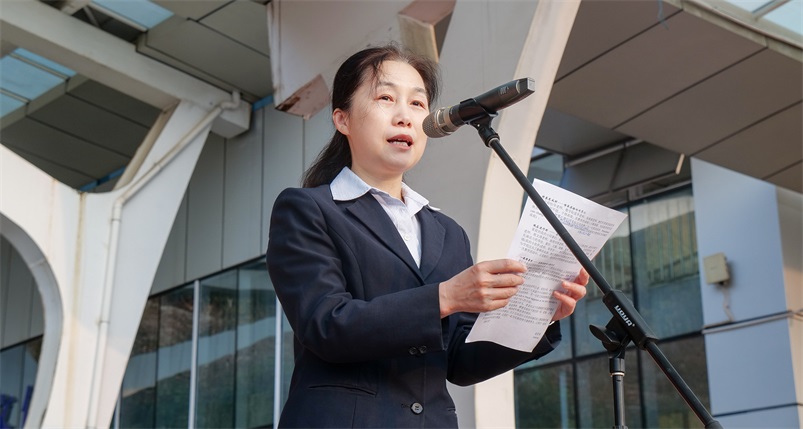 清晨的阳光透过树梢,照耀在操场上。周一晨会上,全校师生齐聚操场,聆听教师代表赵若英带来的“实验之花,共筑美好”主题晨会演讲,共同庆祝即将到来的国际三八妇女节。赵老师从“现在完成时—开创实验的前辈们”、“将来完成时—传承实验的同辈们”、“现在进行时— 发扬实验的新锐们”和“一般将来时— 创新实验的女同学们”四个时刻,展示实验女教师的风采,展望学校未来的发展。