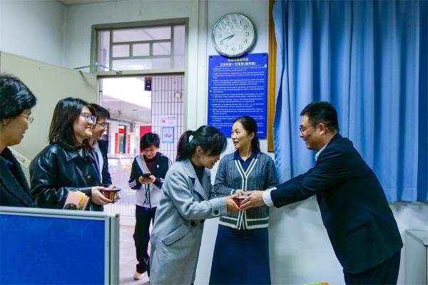 妇女节当天上午,党总支书记邓旭校长、工会主席吴平波主任及行政干部等共赴三个年级办公室,慰问在岗的女教师们。邓旭校长与每位女教师们亲切交谈,了解她们的工作和生活情况,并亲自送上节日的祝福和慰问品。这份关怀和尊重,让女教师们倍感温暖与鼓舞。