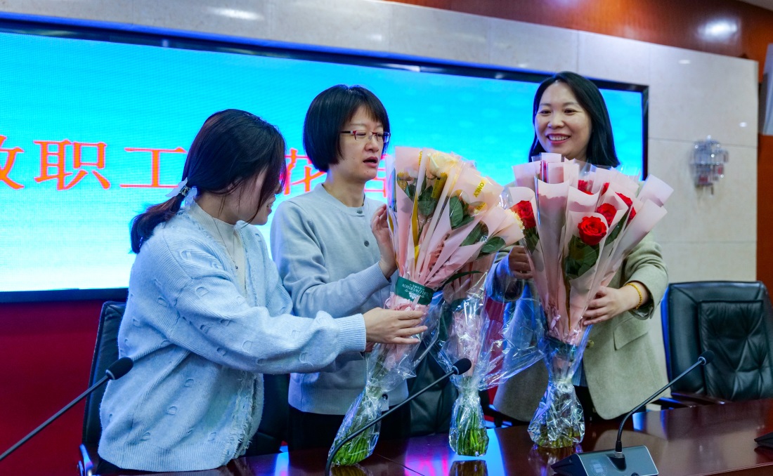 妇女节当天上午11时,综合楼会议室内举办了一场女教辅职工座谈会。邓旭校长及各处室领导与行政教辅的女教职工齐聚一堂,向她们表达真诚的谢意与诚挚的问候。办公室吴平波主任主持会议,向各位介绍学校所做的三八妇女节幕后筹备工作。随后,邓旭校长作会议发言,高度肯定女教师们的教育贡献、服务岗位女职工们的辛勤付出,祝福大家青春永驻、笑口常开,并期许各处室在日后积极解决大家所遇到的难题。