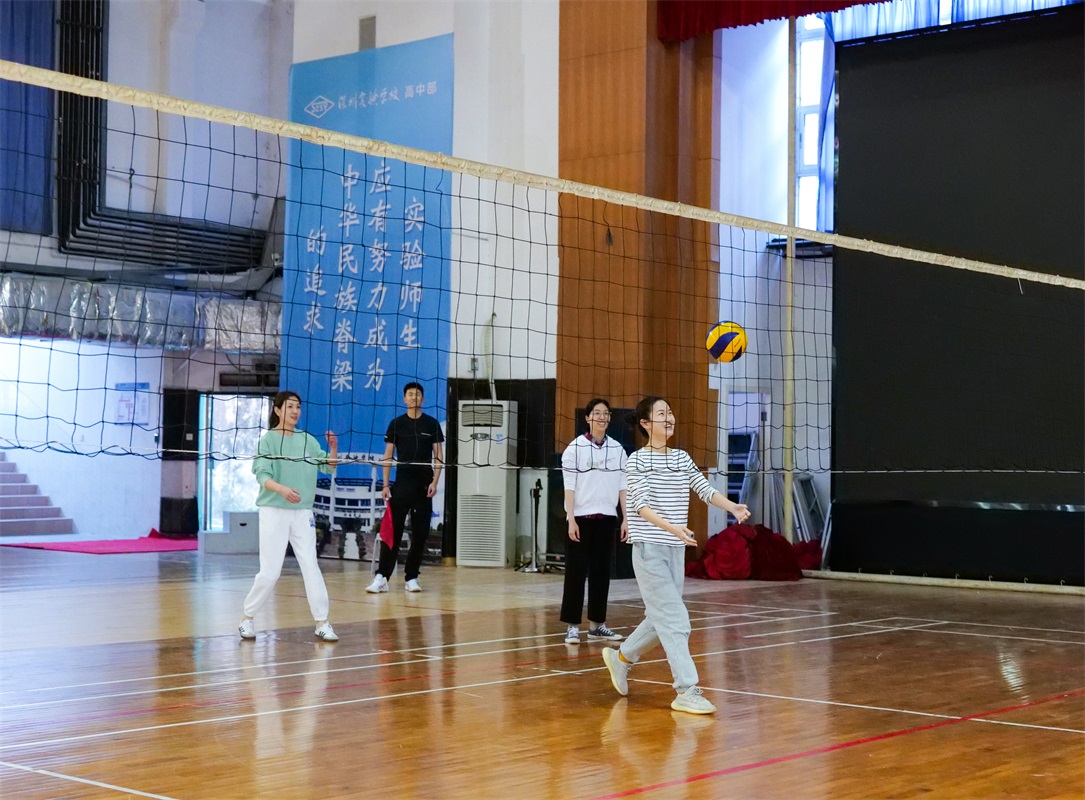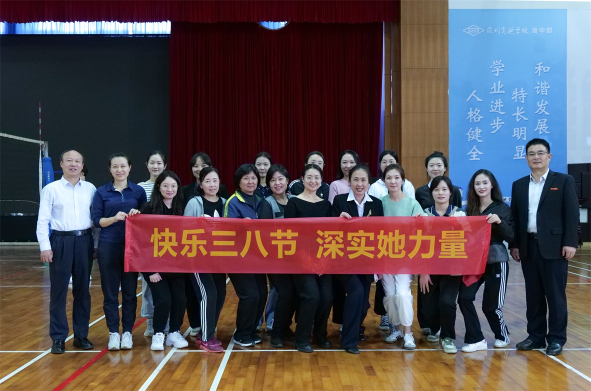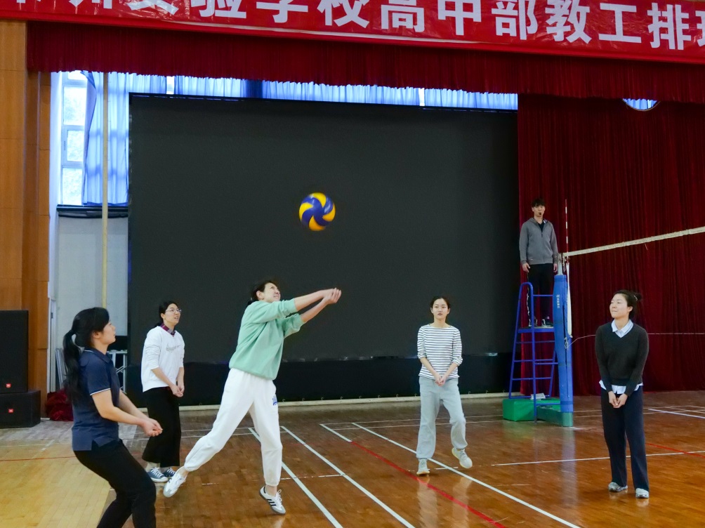 妇女节当天下午,高中部工会举行了教职工排球赛开赛仪式。高一年级和高二年级的健将教师组成两支队伍,展开了一场较量。在排球场上,她们身影矫健,意志坚定,展现出"巾帼不让须眉"的气概。一次次跃起扣杀,一次次顽强防守,排球在她们手中飞舞,热情在她们心中燃烧。她们用行动证明,实验人在运动场上也有教学岗位中的韧性与毅力!让我们为她们欢呼!