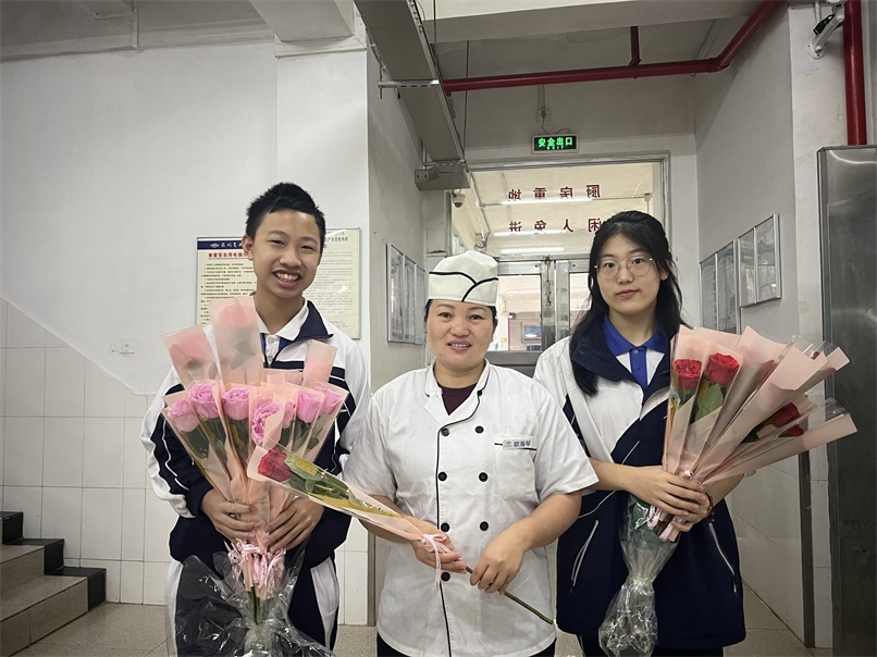 周五上午,一场温馨的献花仪式在饭堂门口举行。早晨的清风拂过脸庞,高中部团委学生会的同学们手持着象征美好祝愿的鲜花,献给每一位走进食堂的女教师和女职工,致以节日的问候。一声声真挚的祝颂、一朵朵明艳的鲜花、一颗颗澄澈的心灵,让高中部的初春更添一份温情与和煦。