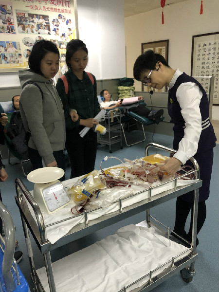蓝主任带领同学们实地参观了血站并现场讲解了细介绍血液的采集、分离、制备、检验和保存等工作流程,令同学们颇感受益匪浅。