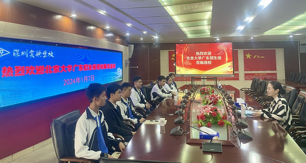 2024年1月7日,北京大学广东招生组邓安琪组长和范老师莅临实验高中部与我校高三年级尖子生进行一对一座谈。在与高三同学的交流中,邓安琪组长向同学们介绍了北京大学的有关情况、在广东的招生政策和近三年北京大学在广东的录取情况。在一对一交流过程中,邓组长详细的询问了每位同学的专业意向、最近几次考试的情况。最后,邓安琪组长鼓励同学们脚踏实地,志存高远,勇于拼搏,圆梦北大,并赠予同学们北大文创纪念品。她和同学们温情相约在今年9月的未名湖畔再相见。