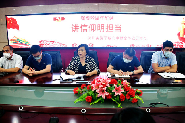 为庆祝中国共产党成立99周年,配合集团党委党建育人工作,提高党员的信仰意识,推进师德师风建设,高中部于2020年7月1日召开全体党员大会,会议由高中部党总支杨文艳副书记主持。