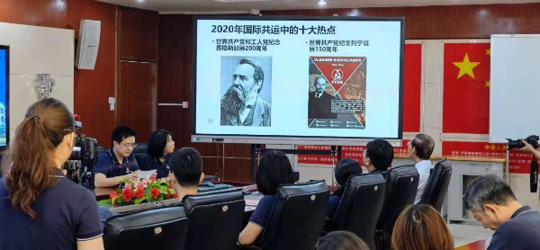 接着,梁宏老师以“2020年国际共运的十大热点”为引子,展现了社会主义制度在疫情条件下的优越性。梁宏老师以生动的语言向全体党员教师系统介绍了国际共运的发展历程,从马克思主义的创立谈起,阐述了中国共产党成立前国际共运的基本情况,让我们深切了解到在中华民族内忧外患之际,第一国际、第二国际、共产国际对我党的成立和中国革命道路探索的深刻影响。梁宏老师强调,要以史为鉴,当今社会,防止资本主义国家对我国的和平演变,防止“资产阶级化的无产阶级”仍然是社会主义建设的重要任务,苏联解体也向我们揭示了我们必须走中国人自己的路!