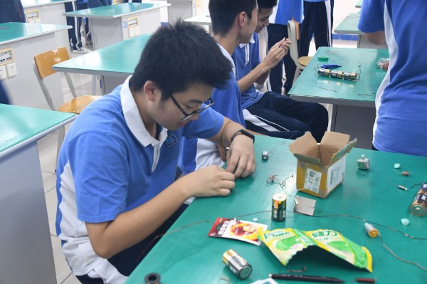 高一物理“鸡蛋撞地球”比赛,要求同学设计结构保护鸡蛋,保证从高处落下的鸡蛋不会破损。比赛要求在鸡蛋不破的前提下,根据下落时间和保护装置重量两个指标进行评比,下落时间越短、重量越轻的,得分越高。比赛共15队同学参赛,他们的设计各有特色、制作精巧,比赛场面热闹非凡。高二物理“神奇的线圈”,利用线圈、电池等材料设计制作各种形状的电动机。同学们在活动中收获探究的乐趣和成功的喜悦。