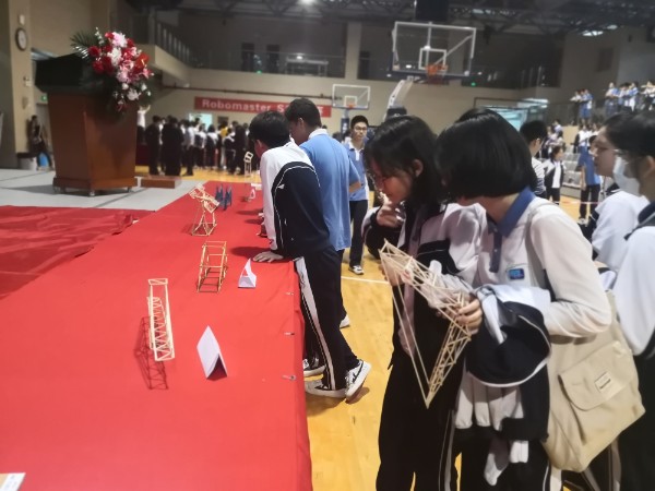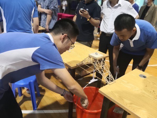 技术学科组精心设计了四项竞技赛事:RoboMaster S1争霸赛、无人机飞行任务赛、桥梁承重设计大赛、桥梁创意设计评比,受到了校内外师生的广泛关注。4月15日下午,由大疆教育发起的“AI教育领航班”教师团队一行80余人、吉安一中教师团队10余人莅临比赛现场观看交流。“RoboMaster S1争霸赛”使用大疆开发的机甲战车,学生以班为单位报名参赛,组成红蓝两方,团队协作,在积木搭建的场地内,模拟军事对抗。比赛趣味十足,现场气氛热烈。“无人机飞行任务赛”使用大疆Tello无人机,以第一视角飞行完成各种不同的穿越飞行任务。“桥梁承重设计大赛”限定使用25g的桐木条制作桥梁,现场进行承重测试,培养同学们工程设计思维、工具使用能力、精益求精的工匠精神。“桥梁创意设计评比”不限材料,同学们发挥创意,设计制作出各种样式的桥梁。