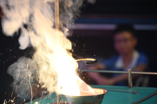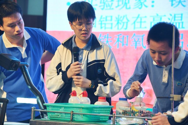 化学实验演示会现场高潮迭起、精彩纷呈,从“火山喷发”到“氯糖反应”,同学们感受到了化学之烈;从“点火成蛇”到“大象牙膏”,同学们感受到了化学之趣;从“焰色反应”到“铝热反应”,同学们感受到了教材中实验的化学之魅。看着那些期待中的实验现象真实地出现在眼前,心中不觉振奋人心,忍不住击节叹赏。