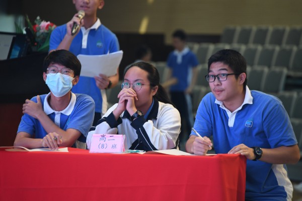 4月13日下午,高二年级12个班级的代表队参加了数学知识竞赛。场上的参赛队员绞尽脑汁,一边马不停蹄地演算试题答案,一边如火如荼地讨论题目思路,还为了争得抢答机会而拼起了“手速”。场下的师生们也完全融入到了赛场上热烈的气氛当中,不时相互讨论着大屏幕上的数学题目。