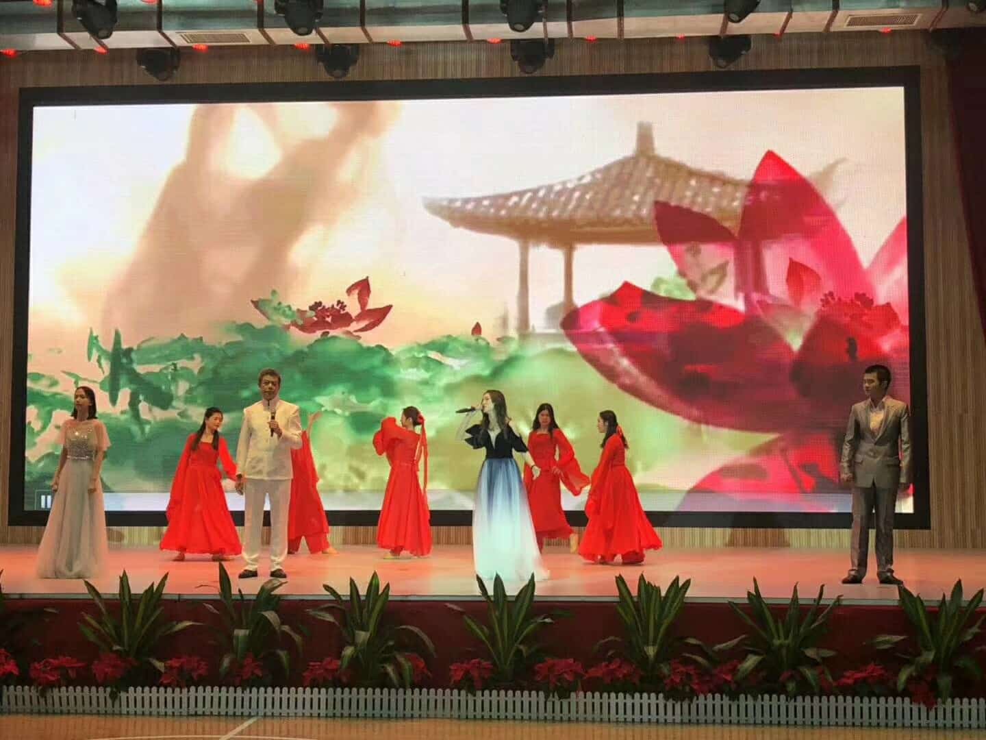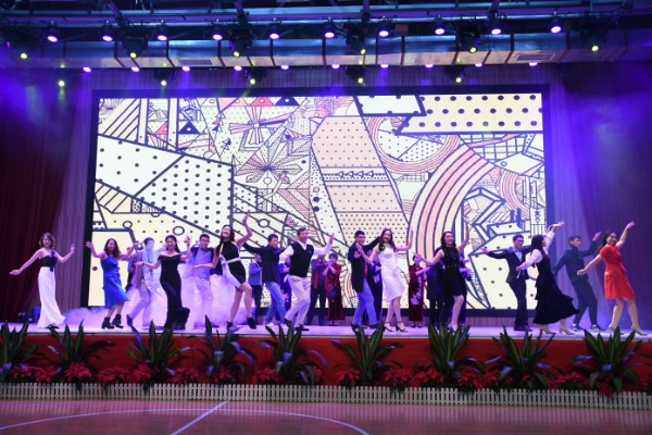 实验教师多才多艺,登上舞台展现另一番风采。高中部教师男声合唱团一曲《鸿雁》让全场仿佛看到鸿雁振翅而起,扶摇直上。青年女教师舞蹈队带来《年年有余》呈现一副水阔凭鱼跃的欢快场面。教师豫剧联唱将我们带回中原大地,在皮黄声中体味民族精粹,感受中华文化。生活服务中心亦带来暖心歌曲《知心爱人》让我们看到平日里为全校师生辛勤服务做好后勤保障的食堂员工也是各个身怀绝技。