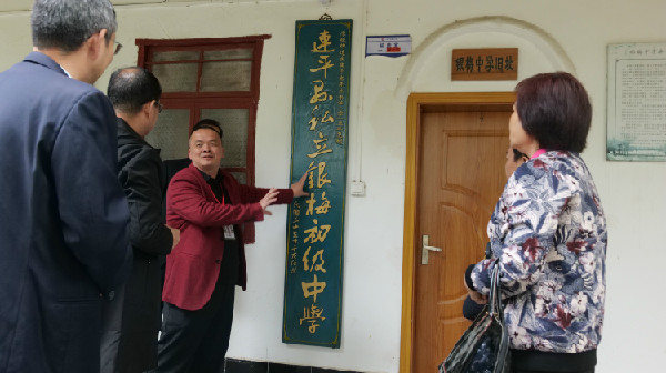 在陂头中学陈平飞校长和各位校领导的热情引领下,我们首先参观了学校的环境和设施,陂头中学始名“连平县私立银梅初级中学”,创办于一九四五年,首任校长为毕业于中山大学、人称“翁源四君子”之一的李心钧,原校牌为国民党元老、著名书法家于佑任先生所书。作为一间历史久远的乡镇中学,陂头中学拥有自己的办学理念和校歌、校花,其中校花为当地特有的银梅花。目前拥有18个教学班,学生900多个,教师62人。学校年代久远的建筑、字体隽永的校牌、刻在石碑上的校歌、风姿绰约的校花(银梅花)均透露出学校厚重的历史和文化底蕴,校园中穿梭而过的同学们显得格外朴实,见到老师和来宾都会亲切地叫声“老师好!”,正在上劳动课的初一学生正在生态园里忙碌着,陈校长告诉我们,陂头中学的校园卫生全部都是由学生来完成的……