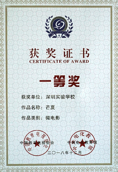 深圳实验微电影《芒夏》荣获全国一等奖