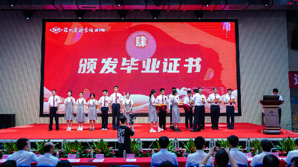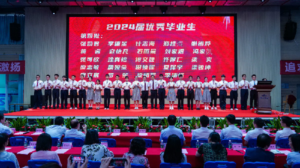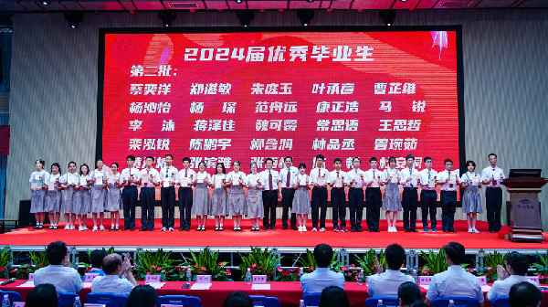 裴绍才主任宣读了《关于准予曾睿鸣等509名学生毕业的决定》和《关于表彰曾睿鸣等98名优秀高中毕业生的决定》两项决定。夏育华书记、邓旭校长为学生代表颁发毕业证和优秀毕业生荣誉证书。
