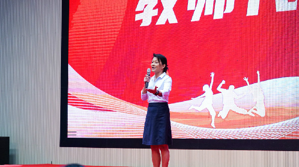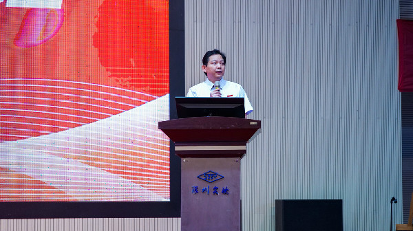 教师代表徐怡华老师开场即问道:《深圳实验学校校歌》的最后一句是什么?“看我们,从这里出发,走向光辉前程!”引出发言题目:从这里出发。徐老师将永葆“年轻态”的秘笈总结为终身学习、坚持运动。她说学习是件很苦的事,如何把这苦变成乐,奥秘就在于主动与被动四个字之间。每天学习虽苦且累,但是很快乐,因为我想学,我愿学,我知道我为什么学。因为快乐,所以学习让我“年轻态”。每天运动也苦也累,但是很快乐,因为我想跑,我愿举(举铁),我知道我为什么汗流浃背。因为快乐,所以运动让我“年轻态”。最后徐老师给所有同学布置了一份作业:给10年后的自己写一封信,并相约10年后一起齐聚高中部校园打开这尘封10年的信,看看自己是否初心依然。重温实验校训,看看自己离“脊梁”是否更近了。