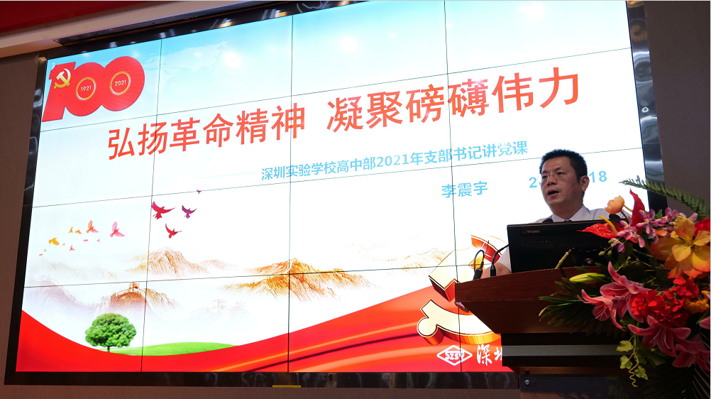 李震宇书记将理论与实践结合,党史学习与高中生活结合,图文并茂的讲解了党的伟大精神,具体包括红船精神、井冈山精神、长征精神、延安精神、“两弹一星”精神、特区精神、抗洪精神、抗“疫”精神、脱贫攻坚精神等一系列弥足珍贵的精神财富。