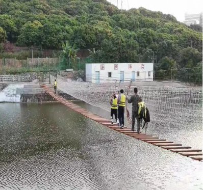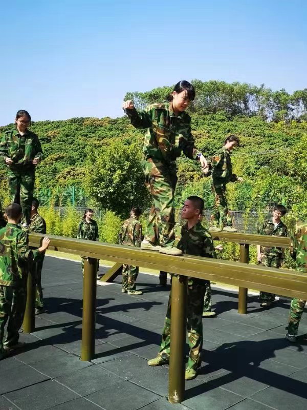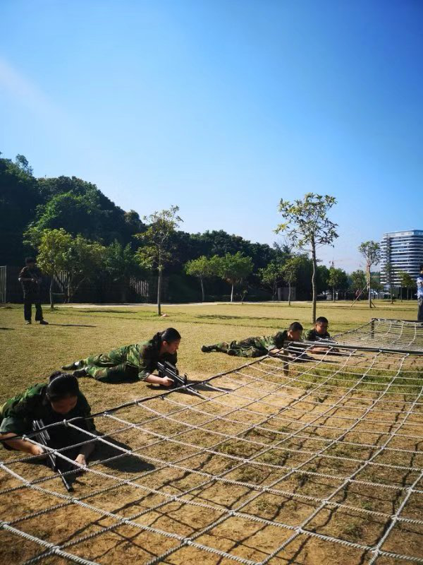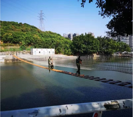 如果战术训练考验了同学们的团队协作,那接下来的飞渡泸定桥则是考验他们的胆量。同学们相互鼓励,勇敢前行,每个人都出色的完成了训练任务。