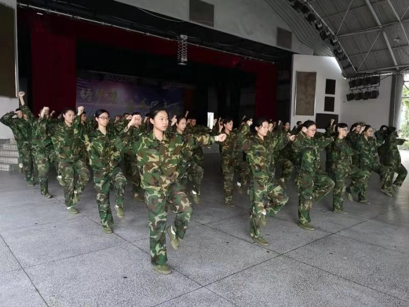 下午的训练显得更加艰苦。正步走,向来是同学们的难题之一。脚尖用力,与地面呈45度,左右标齐。一条条严格的要求考验着同学们的耐心和毅力,就算环境再闷热,双腿再酸疼,那整齐的队列就能弥补所有的付出。军体拳考验的是同学们手脚的协调配合。出拳,迈腿,转身,同学们从无到有,从生疏到熟练,逐渐将一套军体拳打出了雄风。此时暮色开始四合,训练中的同学们又带着一股“打靶归来”的豪情壮志。
