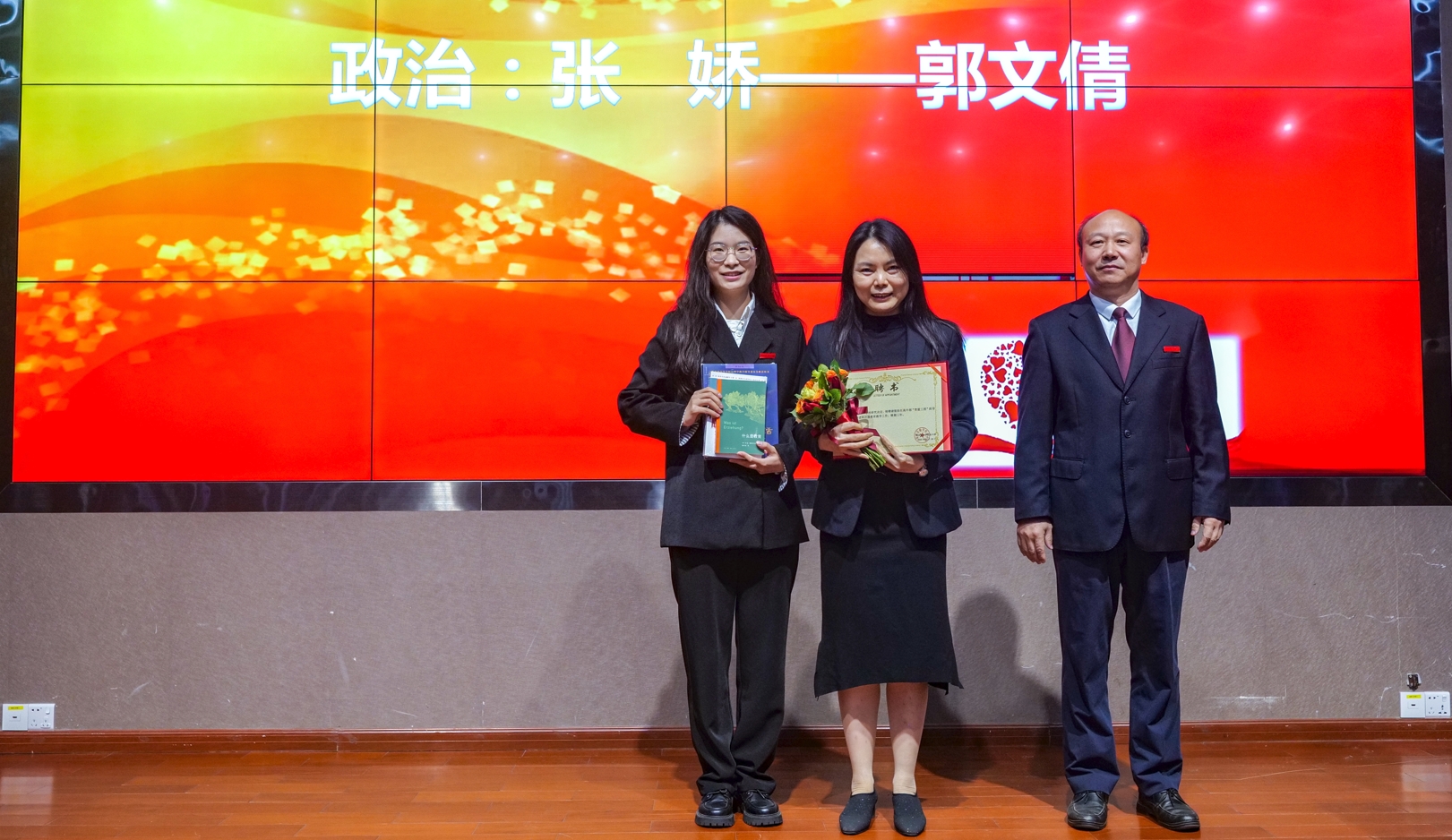 随后,政治科组的郭文倩老师作为师父代表发言。郭老师代表师父们承诺将以身作则,以职业道德和专业技能为基石,竭尽所能陪伴青年教师更快更稳地成长。同时,向年轻老师的加入表示热烈欢迎,并勉励徒弟们以理想信念为指引,以道德情操为底色,以扎实学识为支撑,以仁爱之心为灵魂,做到以心化心、以德育德,为教书育人的崇高使命而不懈奋斗。
