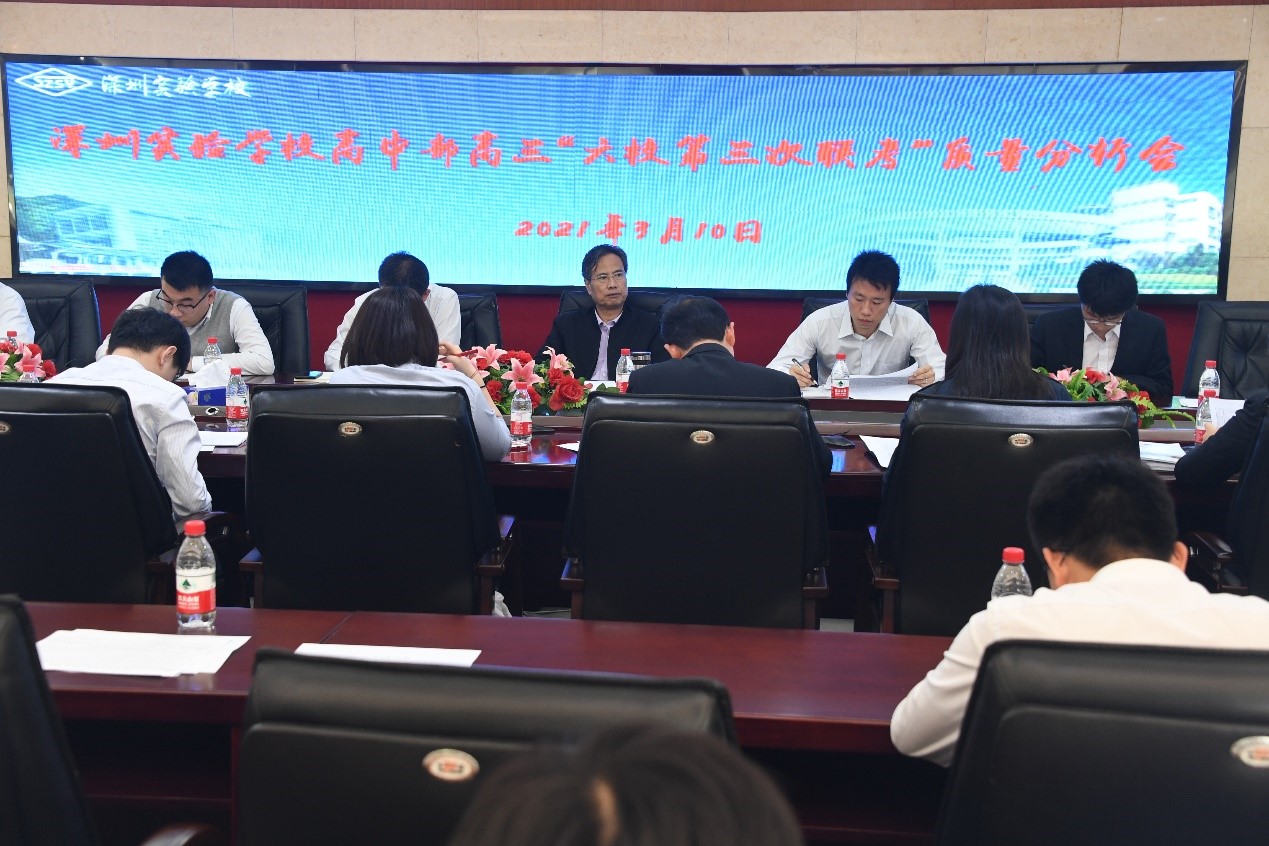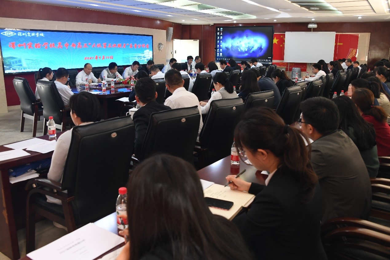 3月10日下午,高中部高三年级召开了2021届高三年级二轮复习备考会暨六校联盟第三次联考成绩分析会。深圳实验学校衷敬高校长莅临听取各部门深入细致的成绩分析,并对高考前最后冲刺阶段提出了重要的意见和建议。李震宇副校长及全体高三教师、高一高二年级的两位年级主任及光明部高三年级各备课组长参加了会议。