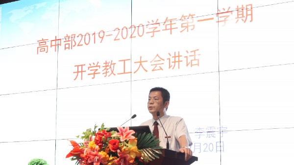 2019年9月20日,深圳实验学校高中部2019-2020学年度第二次教工大会在报告厅隆重举行。李震宇校长立足新时代“四有”好老师的基本内涵,结合学部暑期和新学期工作的实际情况,以“讲担当,定方向,找问题,抓落实”为主题发表了学期工作讲话。