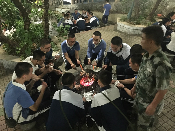 晚上举行了烧烤活动,大家争相烧给其他同学吃,互帮互助,分享着自己的成果。