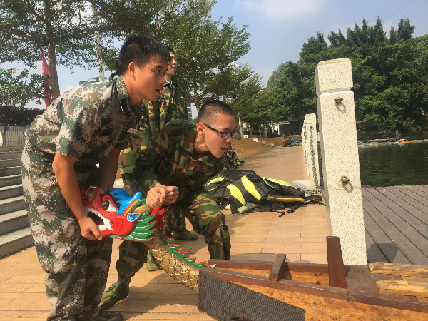 他们还体验了一把水上过锁链的刺激,笑声中,少年们克服了恐惧,锻炼了勇气。下午的时光中,少年们迈着整齐的步戏,怀揣着放松愉悦的心情,来到了湖边。河水荡漾起一圈圈的银波,少年们眼中是抑制不住的兴奋。分好了小队,穿好了救生衣,他们互相扶持着,小心地走上了龙舟,船浆一起一落,水波渐击渐远,龙舟也缓缓划远。欢笑与嬉闹的交织中,少年们体会到了集体活动的喜悦与愉快,他们望着彼此真诚的笑脸,他们心中渐渐浮现了一个念头,觉得自己已经离不不开这个集体了。