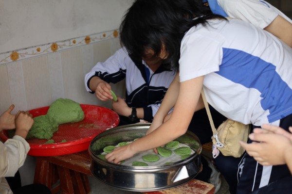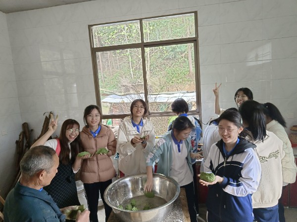 在叔叔阿姨们的指导下,同学们挽起袖子、扛起锄头,踏入深山,干起了农活。一颗颗破土而出的新鲜竹笋、一个个形状各异的艾米果、一道道精心准备的菜肴……都是同学们辛勤付出的见证。