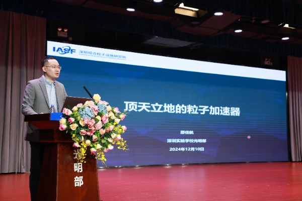 作为此次合作的亮点项目之一,“粒子院”邵佳航研究员带来了一场专题讲座——《顶天立地的粒子加速器》。邵佳航研究员在深圳出生长大,2011年本科毕业于清华大学电子工程系,2016年7月于清华大学工程物理系获得博士学位,2016年至2021年在美国阿贡国家实验室先后任博士后和助理研究员。邵研究员作为粒子加速器领域的专家,以其深厚的学术造诣和丰富的实践经验,深入浅出地向师生们介绍了粒子加速器的基本原理、主要应用以及深圳自由电子激光装置等前沿科技知识,带领师生们走进了神秘的微观粒子世界。