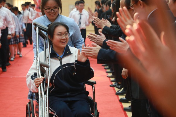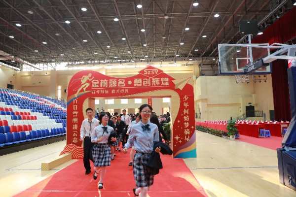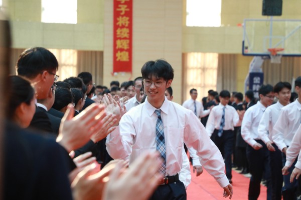 在大会的最后,激昂的音乐在耳边回响,即将面对高考检验的高三同学们扬起自信坚定的笑容,意气风发地走在象征成功大道的红地毯上。