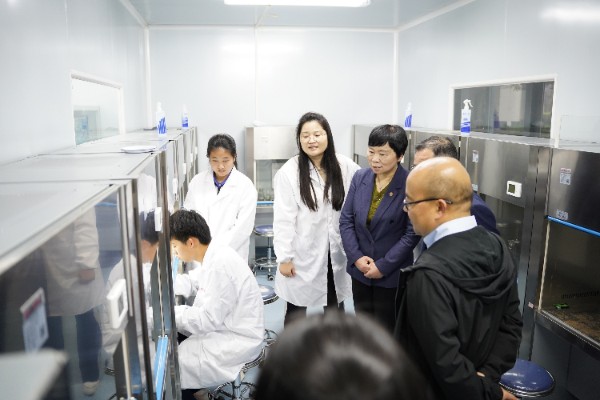 其中,来宾们重点参观了位于D、E栋的生命科学探究实验室和理化生智慧云实验室,各实验室成员介绍实验室的设施、研究方向及成果,各位同仁认真聆听,对实验室先进的仪器设备、严谨的科研态度及所取得的科研成果表示赞赏。