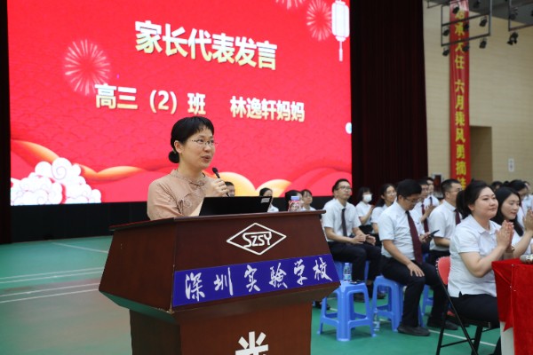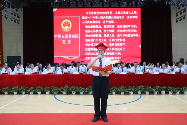 学生代表高三(16)班罗海洋同学带领全体高三学子面对中华人民共和国宪法庄严宣誓,铿锵有力的誓言在馆内回荡,彰显着新时代青年的担当。家长代表高三(2)班林逸轩妈妈登台致辞,言语间满是殷切期望:“十八岁意味着责任与独立,意味着可以昂首挺胸地走进更广阔的世界,更意味着你们要开始书写自己的人生,但无论你们走得多远,家永远是你们最温暖的港湾。”朴实而深情的话语让在场师生无不动容。